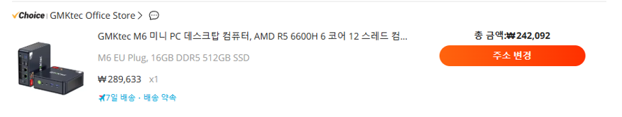 6. GMKtec M6 242,092원 + 관부가세 25,850 = 267,942원