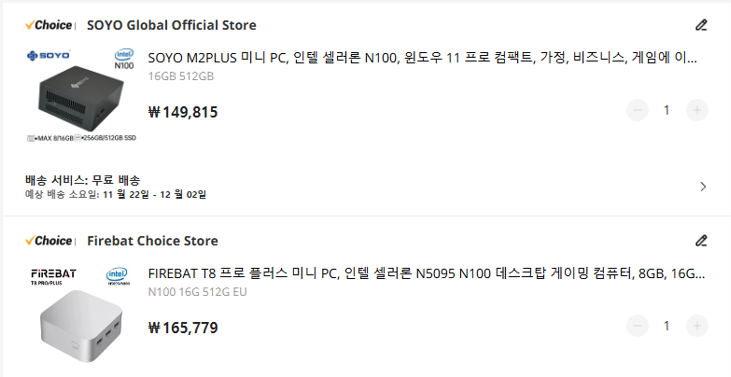 4.Soyo M2PLUS 129,219원 + FIREBAT T8 프로플러스 142,988원 = 272,207원+