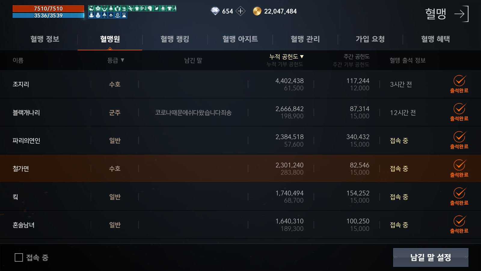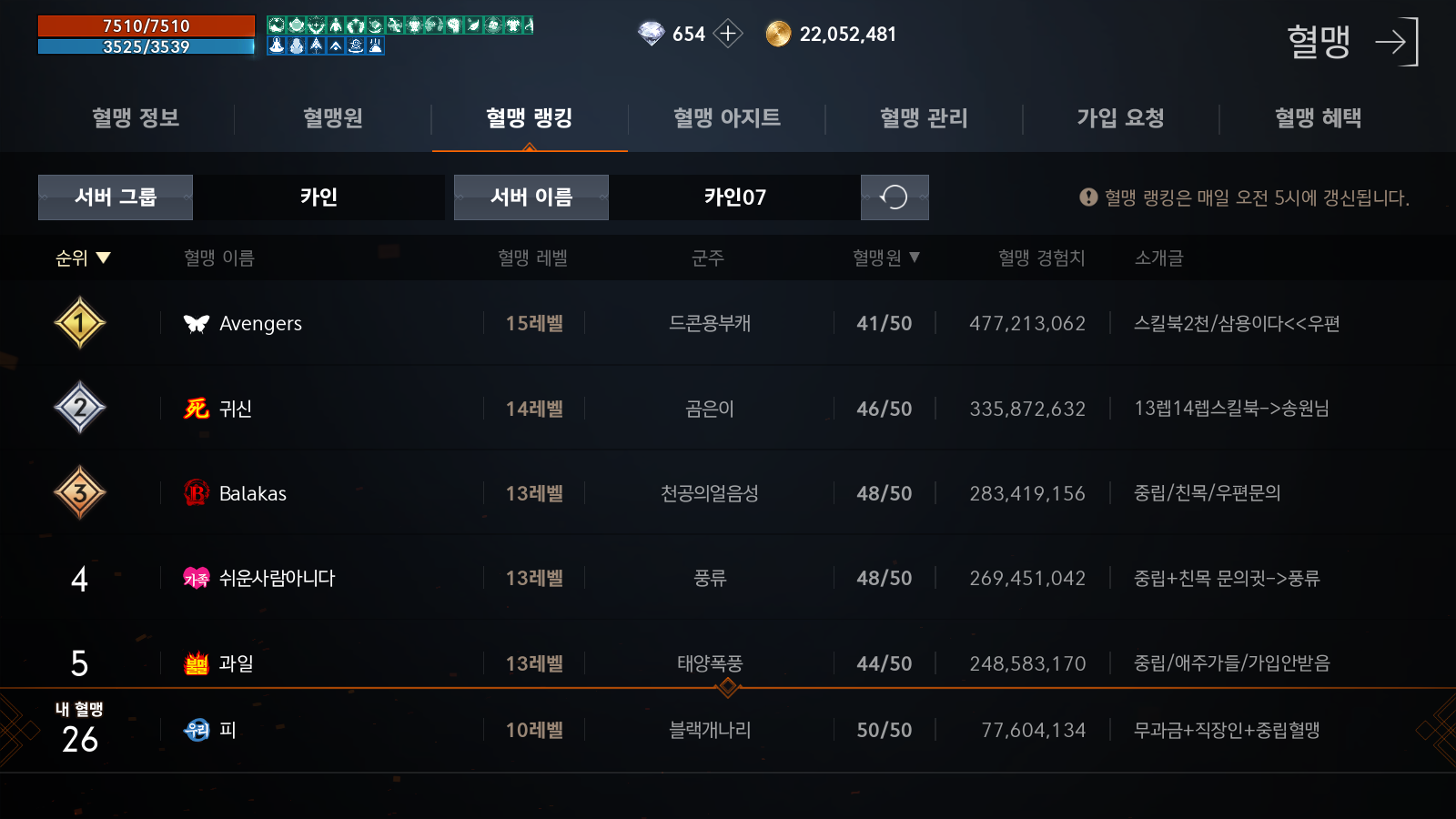 새로 옮긴 혈맹은 4위인데, 3~5위가 거의 대동소이한 규모 및 경쟁력의 혈맹이었다.