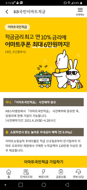 이마트 실적을 채워주는 조건으로 고이율 적금이 나왔다.