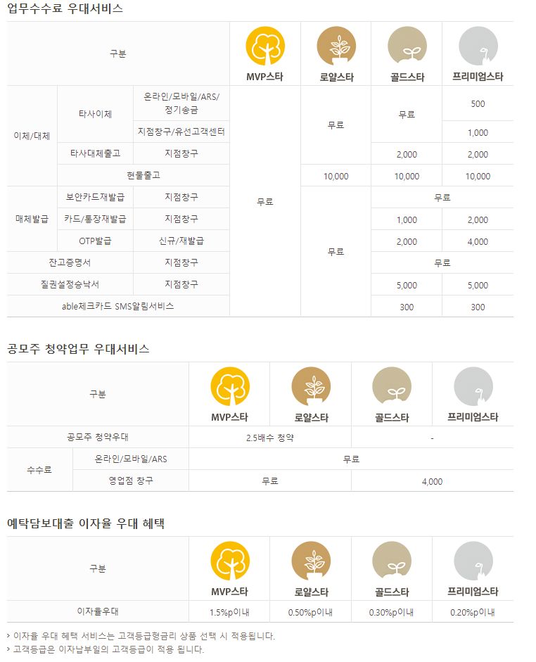 프리미엄 < 골드 < 로얄 < MVP 등급이 되며,