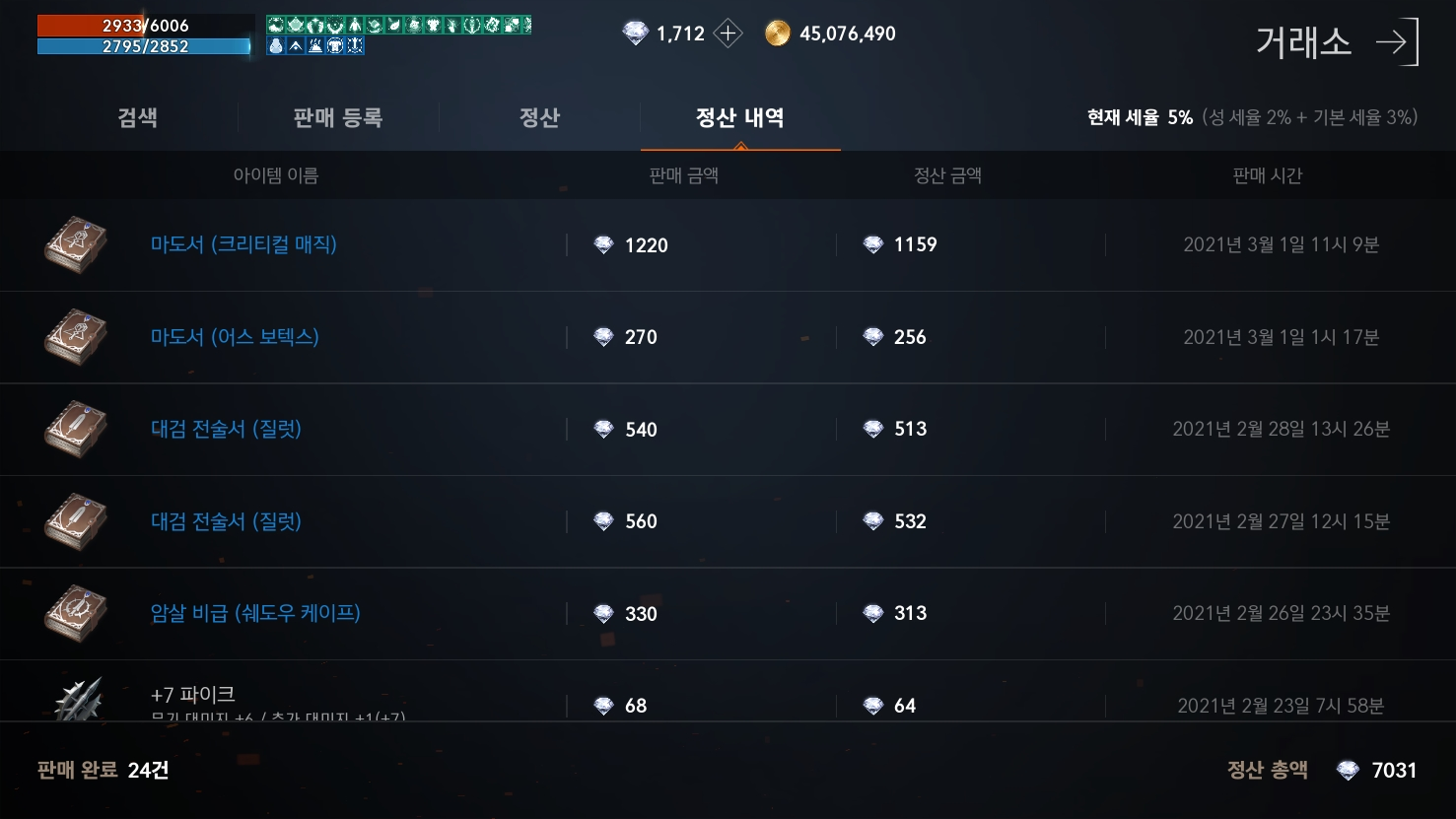 4. 영웅템 싸지거나, 서버 통합되면 이전해서 싸게 맞추기 ㅋ