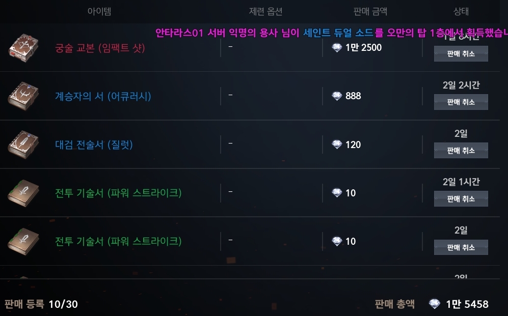 500다야 깎아서 올렸는데 과연 팔릴지~~ 요즘 새캐릭 섭에 거래소가 영 안돌아가서