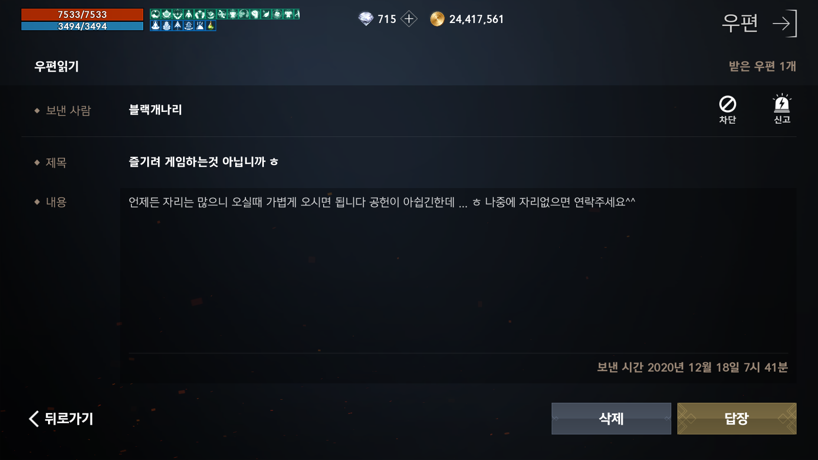 그리고 매주 혈레를 해서 명코 얻기가 좋다는 점~ 덕분에 15렙 스킬까지 배우고~