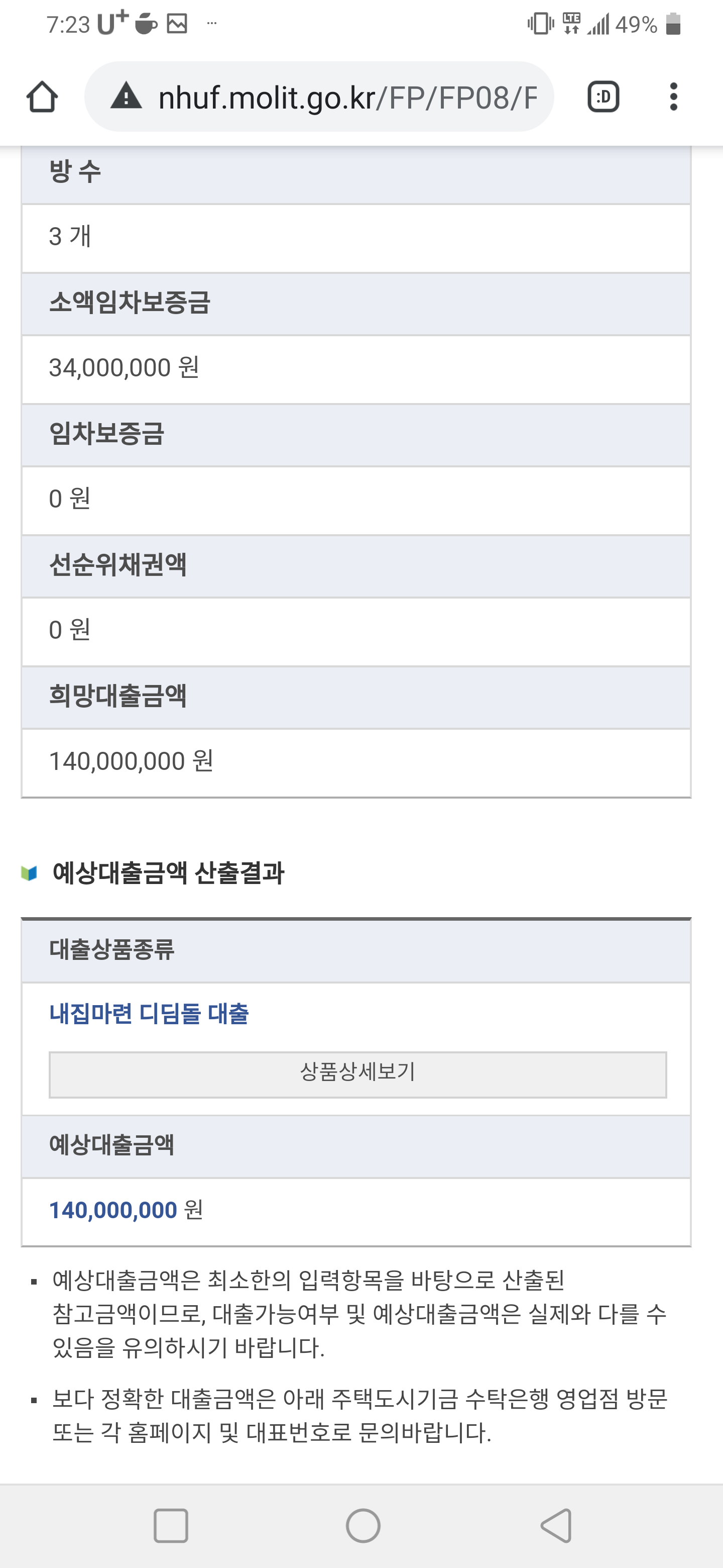 얼마전 휴대폰에서 웹브라우저로 디딤돌 대출에 대한 시뮬레이션을