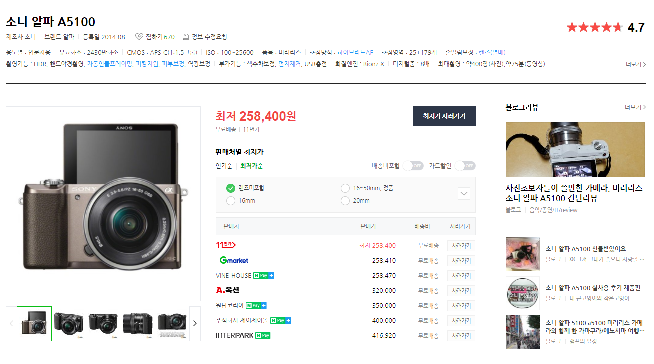 Sony A5100 추천 -> 세트로 대략 60만 정도