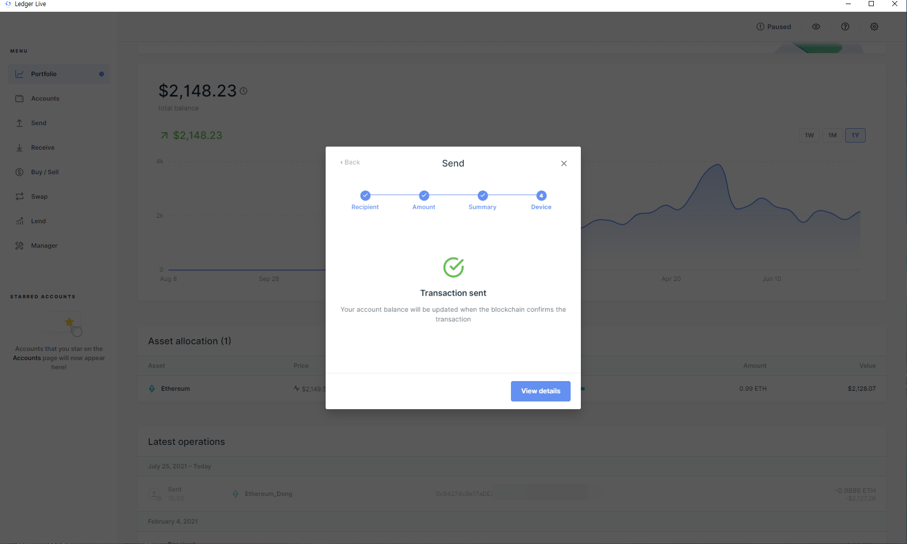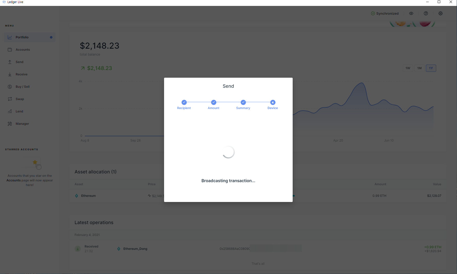 아무튼 이런 시대에 나는 올해 2월쯤 이더리움 1개를 담았던 HW기반 지갑인