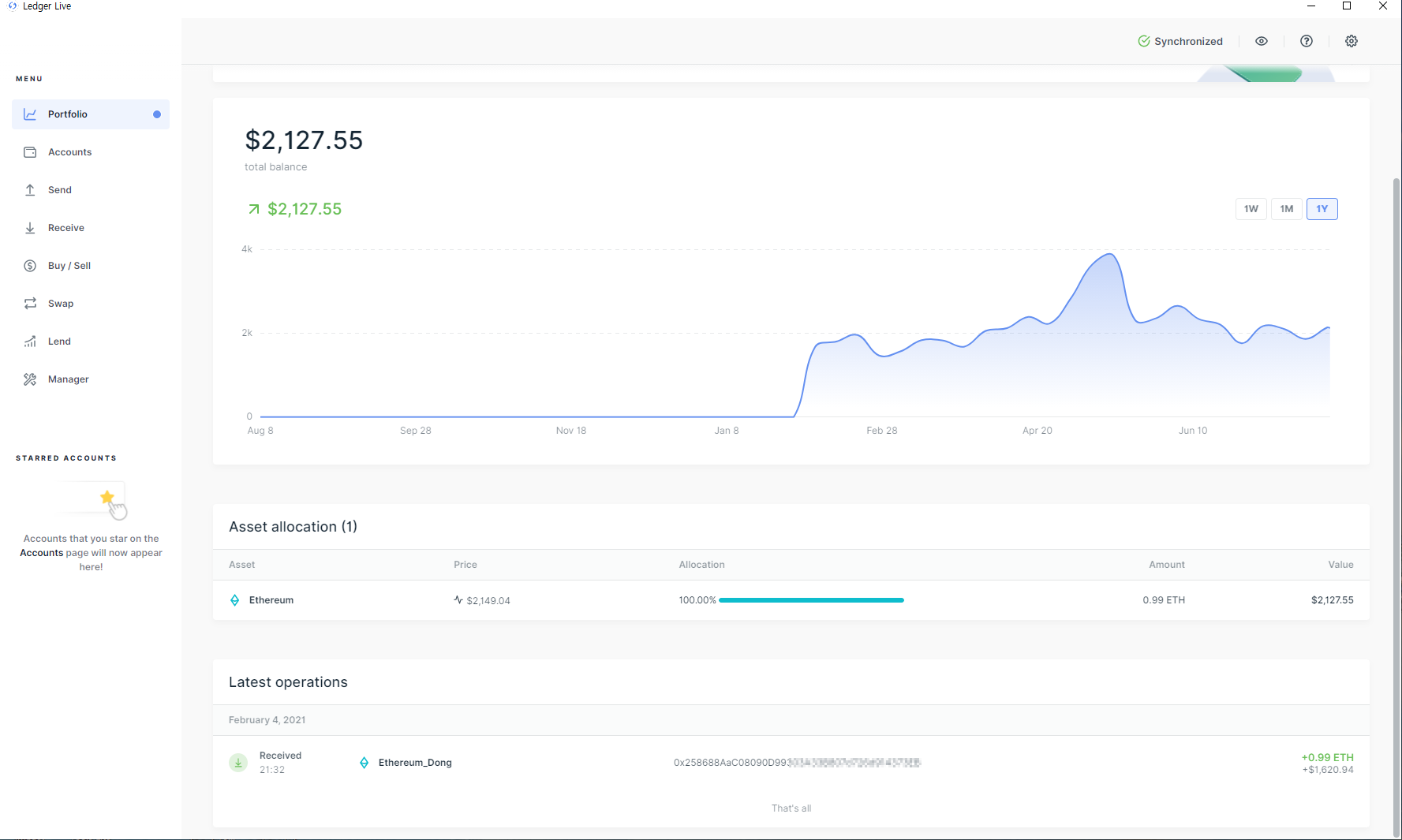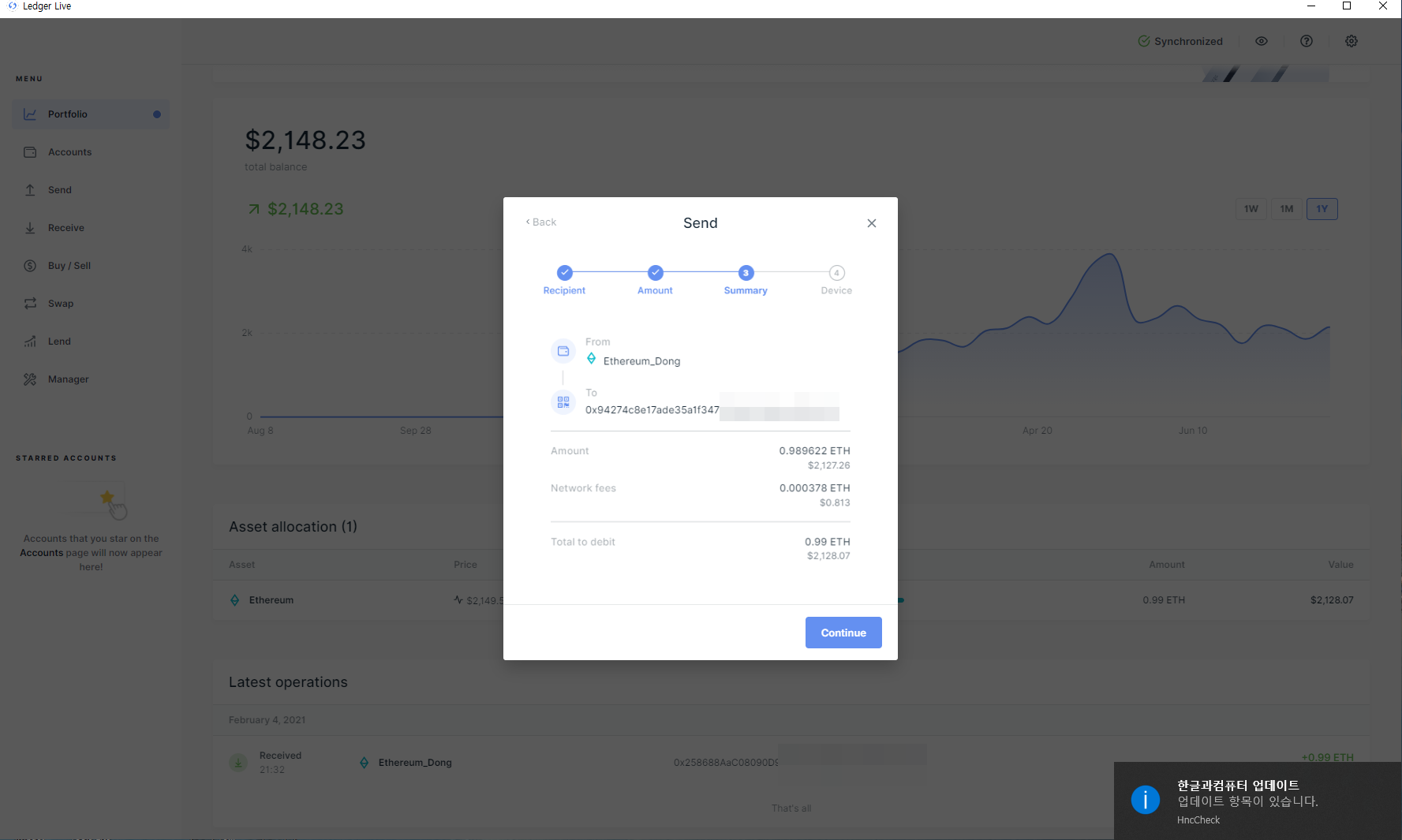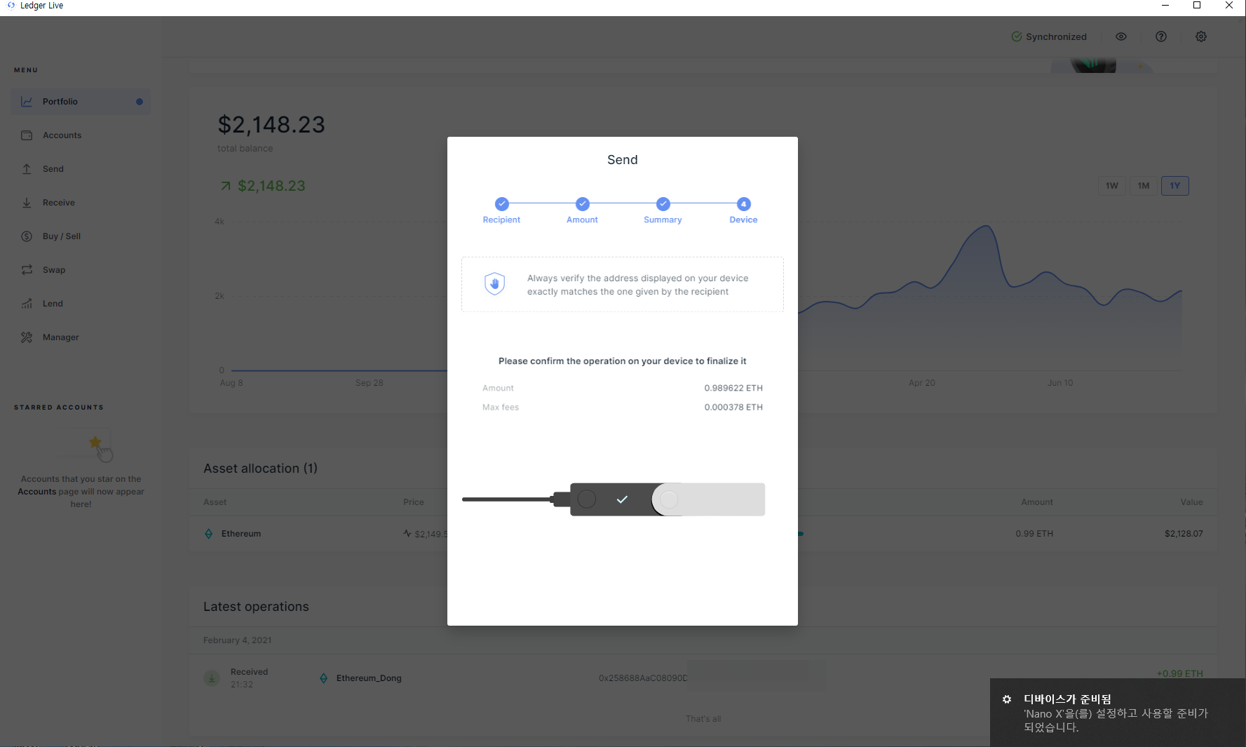 아무튼 이런 시대에 나는 올해 2월쯤 이더리움 1개를 담았던 HW기반 지갑인